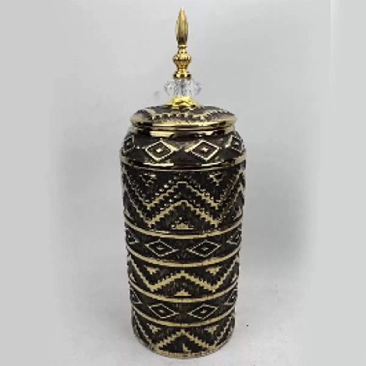 ΒΑΖΟ, ΚΕΡΑΜΙΚΟ, ΜΑΥΡΟ- ΧΡΥΣΟ, 15x15x42.2cm