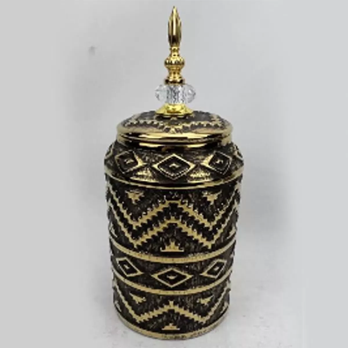 ΒΑΖΟ, ΚΕΡΑΜΙΚΟ, ΜΑΥΡΟ- ΧΡΥΣΟ, 15x15x35.5cm Estheti