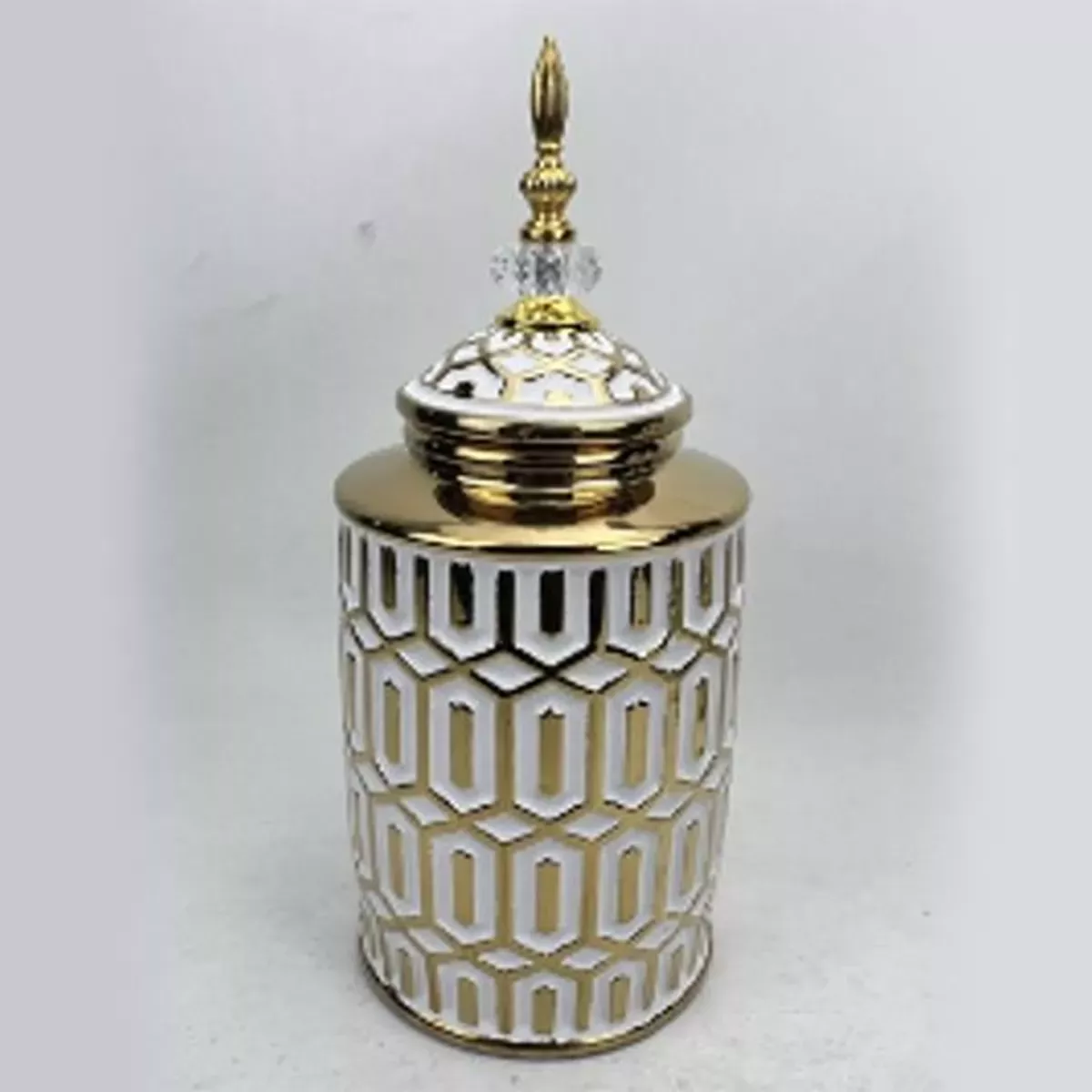 ΒΑΖΟ, ΚΕΡΑΜΙΚΟ, ΛΕΥΚΟ & ΧΡΥΣΟ, 16.9x16.9x40.2cm Estheti
