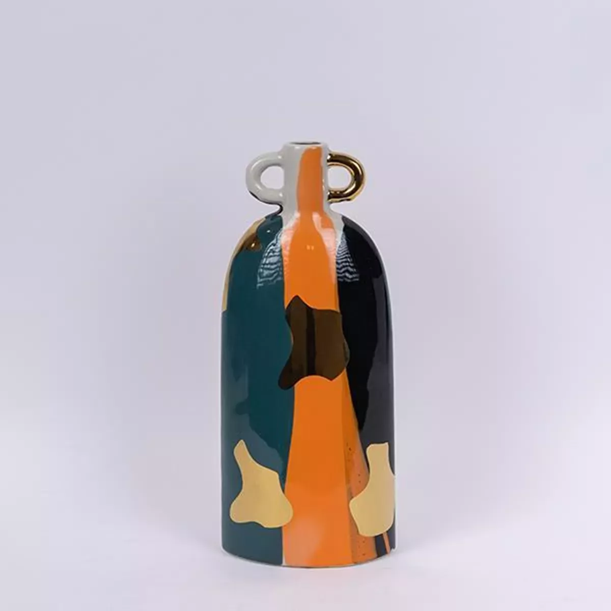 ΒΑΖΟ, ΚΕΡΑΜΙΚΟ, TEΡΡΑΚΟΤΤΑ-ΣΚΟΥΡΟ ΠΡΑΣΙΝΟ- ΧΡΥΣΟ,15.5x9.5x36.5cm