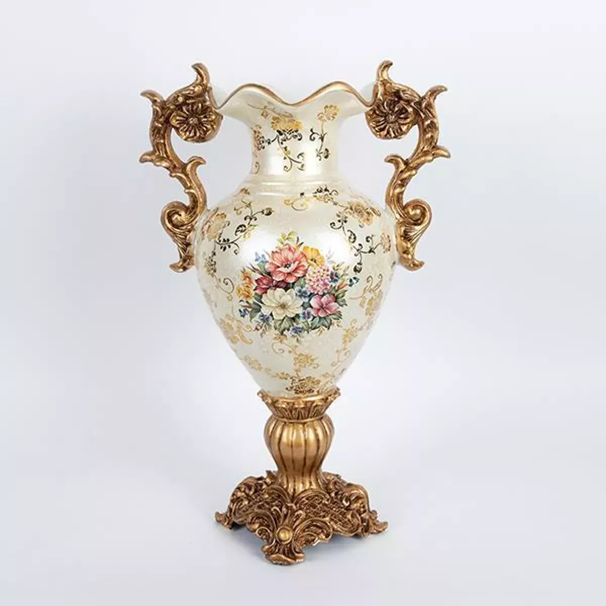 ΒΑΖΟ, ΠΟΡΣΕΛΑΝΗ ΜΕ ΠΟΛΥΡΕΖΙΝ, ΧΡΥΣΟ ΜΕ ΛΟΥΛΟΥΔΙΑ, 34x22x50cm Estheti