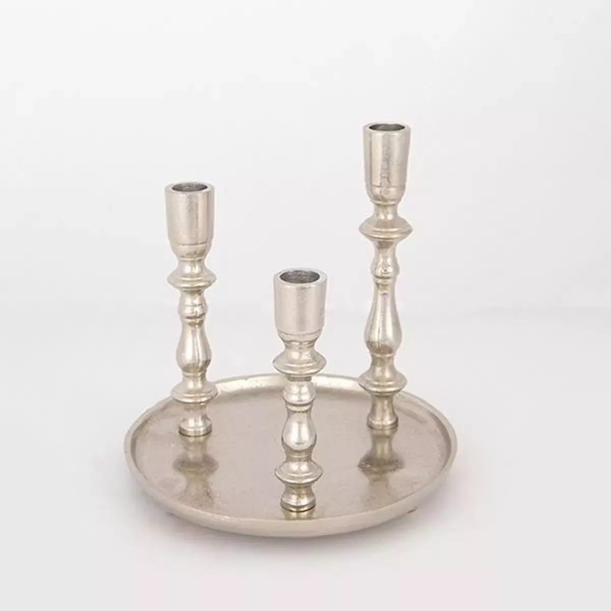ΚΗΡΟΠΗΓΙΟ, ΜΕΤΑΛΛΙΚΟ, ΣΕ ΣΤΡΟΓΓΥΛΗ ΒΑΣΗ, ΑΣΗΜΙ, 3 ΘΕΣΕΙΣ, 19x19x20cm Estheti