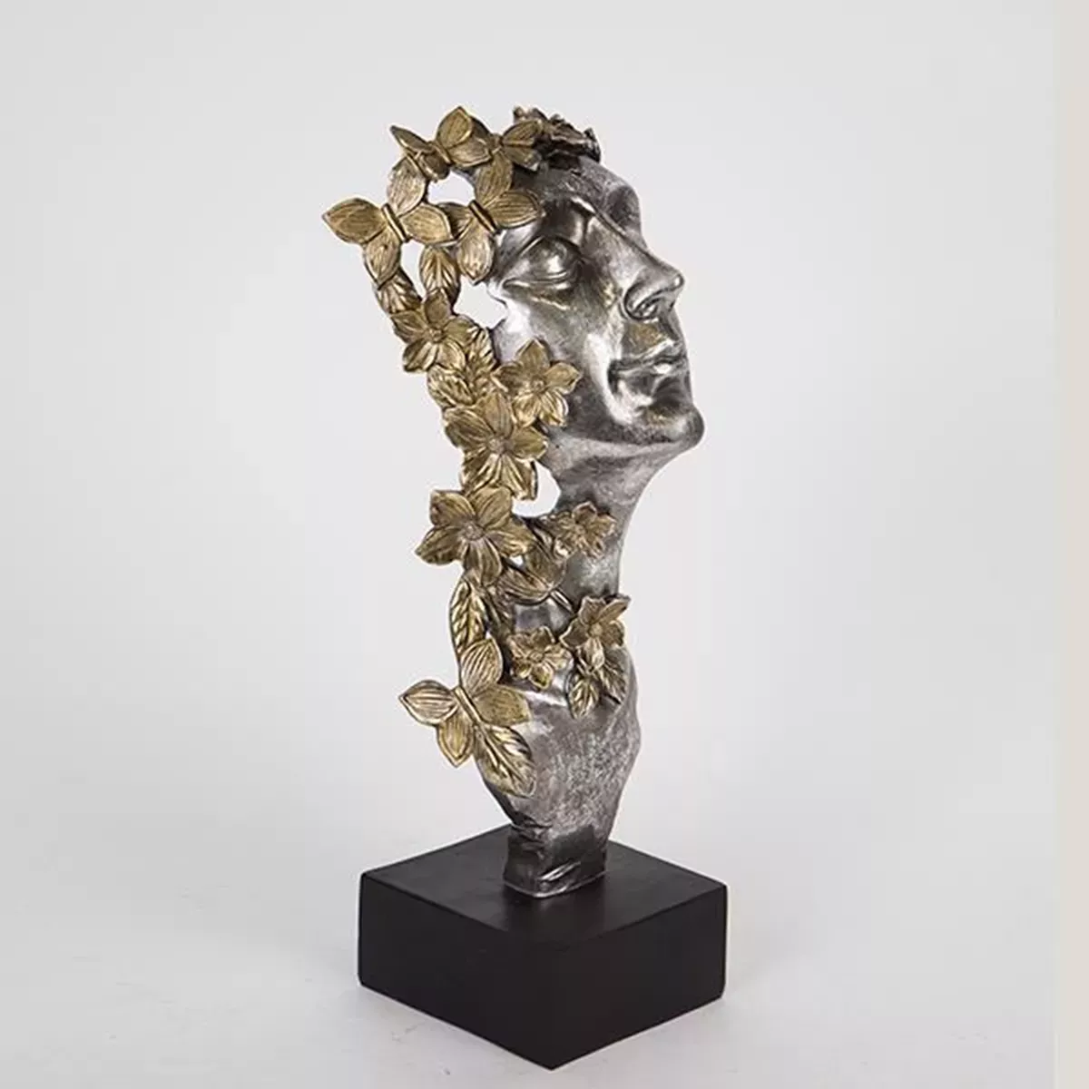 ΔΙΑΚΟΣΜΗΤΙΚΟ ΓΛΥΠΤΟ,ΡΕΖΙΝ,, ΓΥΝΑΙΚΑ ΜΕ ΠΕΤΑΛΟΥΔΕΣ ΚΑΙ ΛΟΥΛΟΥΔΙΑ,ΑΣΗΜΙ-ΧΡΥΣΟ-ΜΑΥΡΟ ΧΡΩΜΑ, 13x11.5x33.5cm Estheti