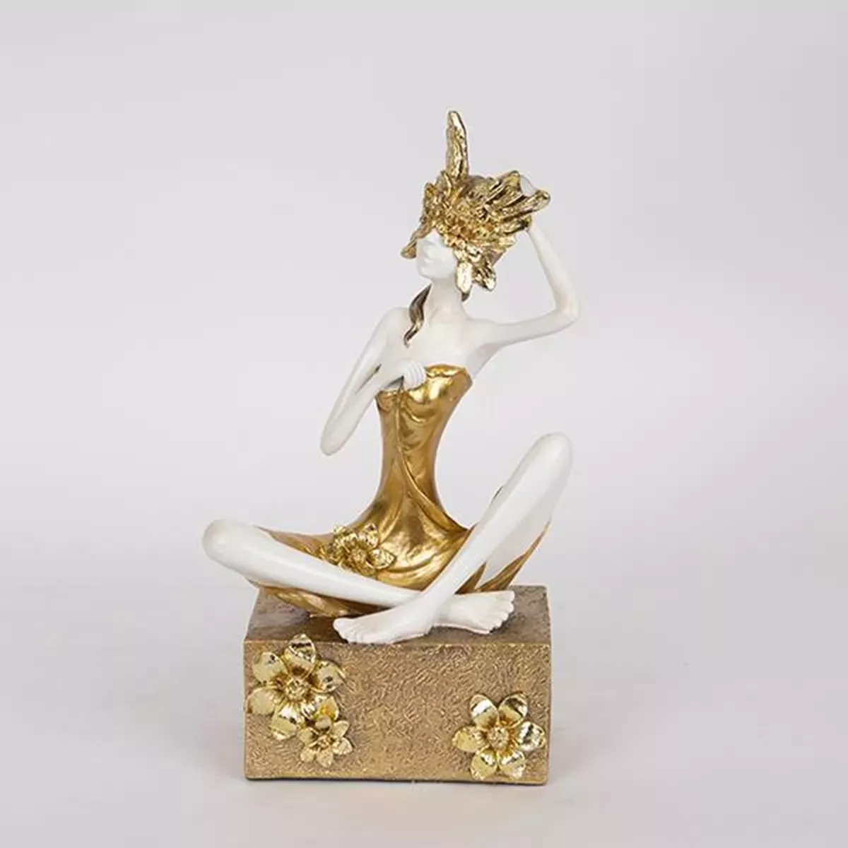ΔΙΑΚΟΣΜΗΤΙΚΟ ΓΛΥΠΤΟ,ΡΕΖΙΝ,, ΓΥΝΑΙΚΑ ΜΕ ΜΑΣΚΑ, ΛΕΥΚΟ-ΧΡΥΣΟ, 15.5x10x28cm Estheti