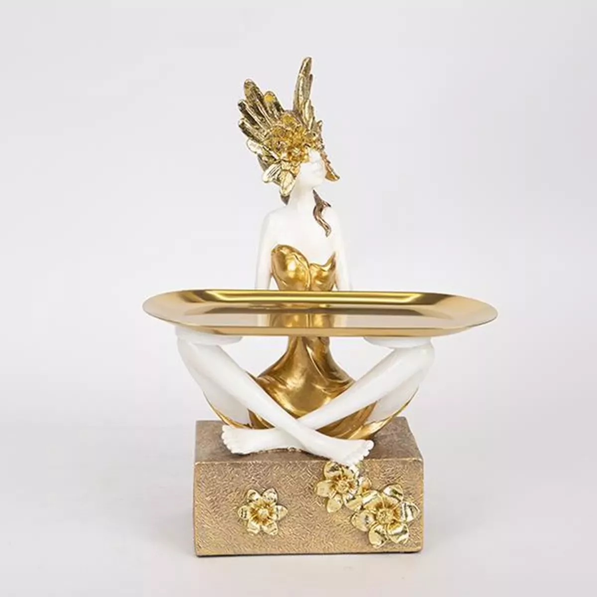 ΔΙΑΚΟΣΜΗΤΙΚΟ ΓΛΥΠΤΟ,ΡΕΖΙΝ,, ΓΥΝΑΙΚΑ ΜΕ ΜΑΣΚΑ & ΔΙΣΚΟ, ΛΕΥΚΟ-ΧΡΥΣΟ,16.5x13x31cm Estheti