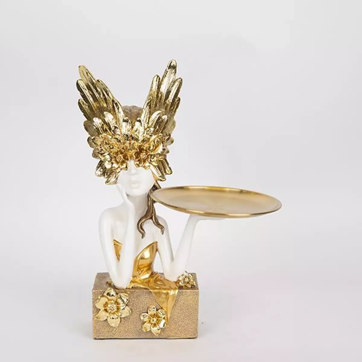 ΔΙΑΚΟΣΜΗΤΙΚΟ ΓΛΥΠΤΟ,ΡΕΖΙΝ,, ΓΥΝΑΙΚΑ ΜΕ ΜΑΣΚΑ & ΔΙΣΚΟ,ΛΕΥΚΟ-ΧΡΥΣΟ 20x12x36.5cm