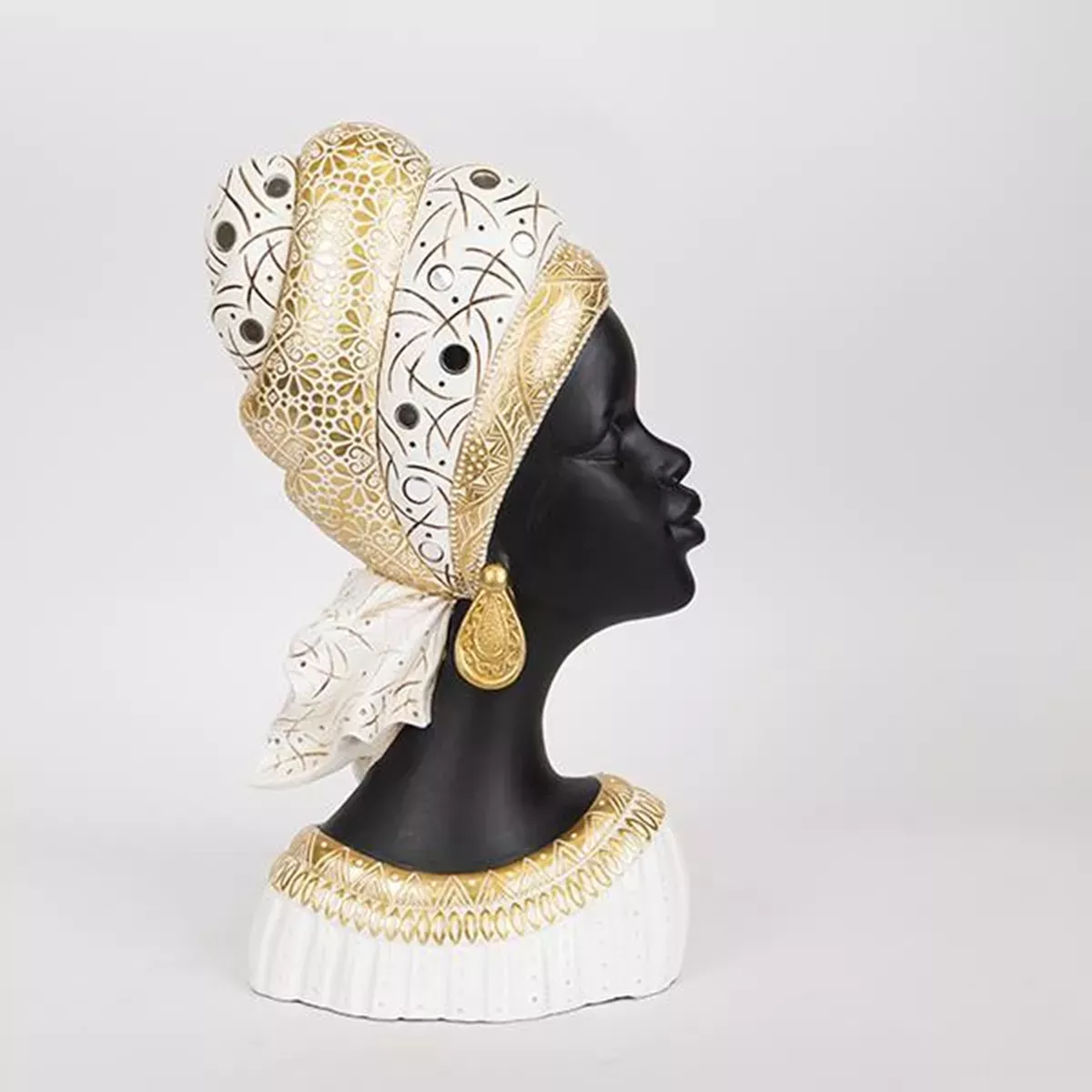 ΔΙΑΚΟΣΜΗΤΙΚΟ ΓΛΥΠΤΟ,ΡΕΖΙΝ,, ΓΥΝΑΙΚΑ ΜΕ ΤΟΥΡΜΠΑΝΙ ΧΡΥΣΟ-ΛΕΥΚΟ-ΜΑΥΡΟ, 22x11.5x38.5cm Estheti