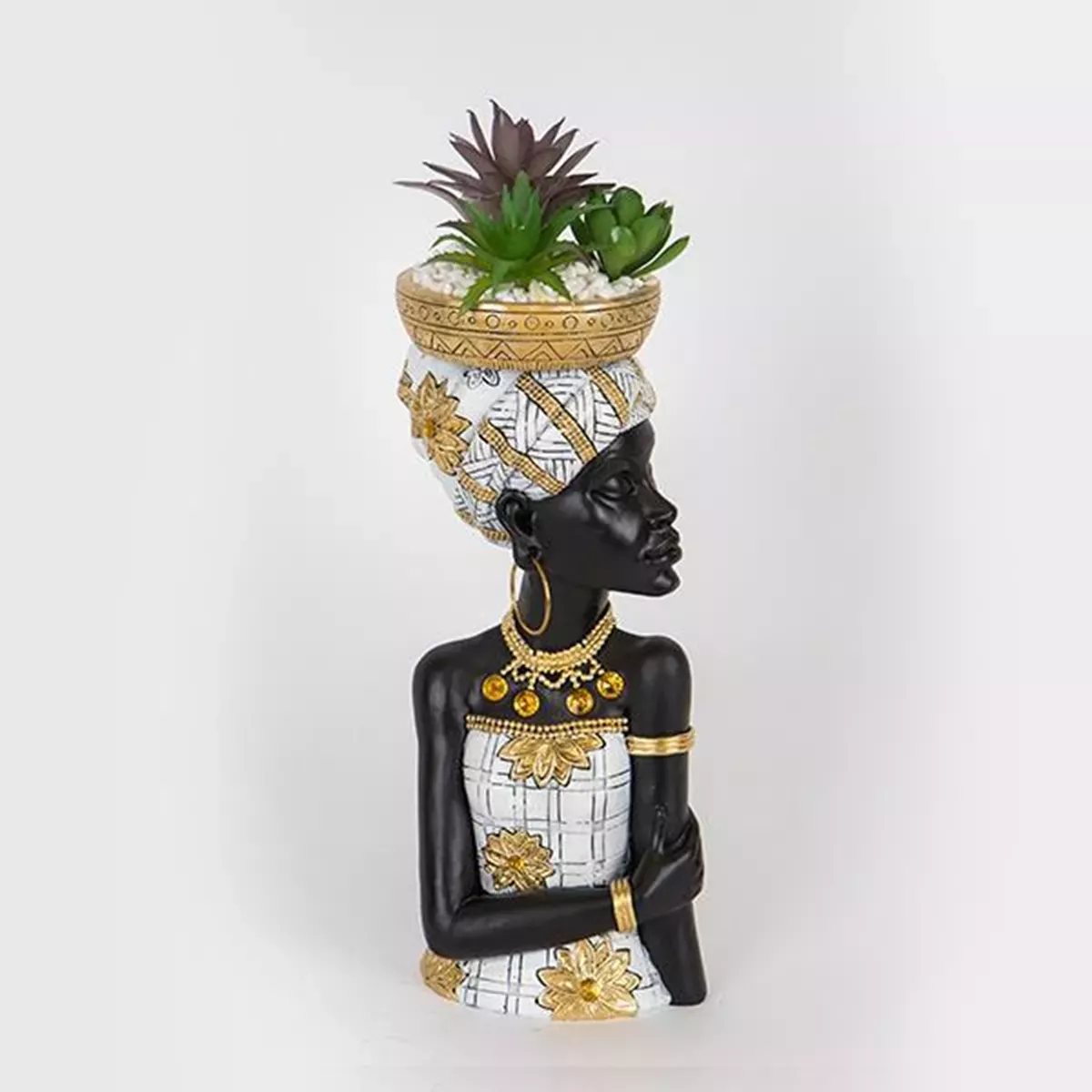ΔΙΑΚΟΣΜΗΤΙΚΟ ΓΛΥΠΤΟ, ΓΥΝΑΙΚΑ ΜΕ ΤΟΥΡΜΠΑΝΙ-ΚΑΛΑΘΙ ΜΕ ΦΥΤΟ, 12x10x28.5cm Estheti