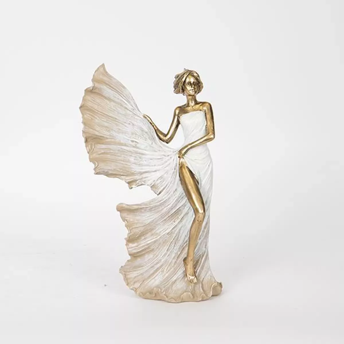 ΔΙΑΚΟΣΜΗΤΙΚΗ ΦΙΓΟΥΡΑ, ΜΠΑΛΑΡΙΝΑ, ΙΒΟΥΑΡ- ΜΠΕΖ-ΧΡΥΣΟ, 16x9x25.5cm Estheti