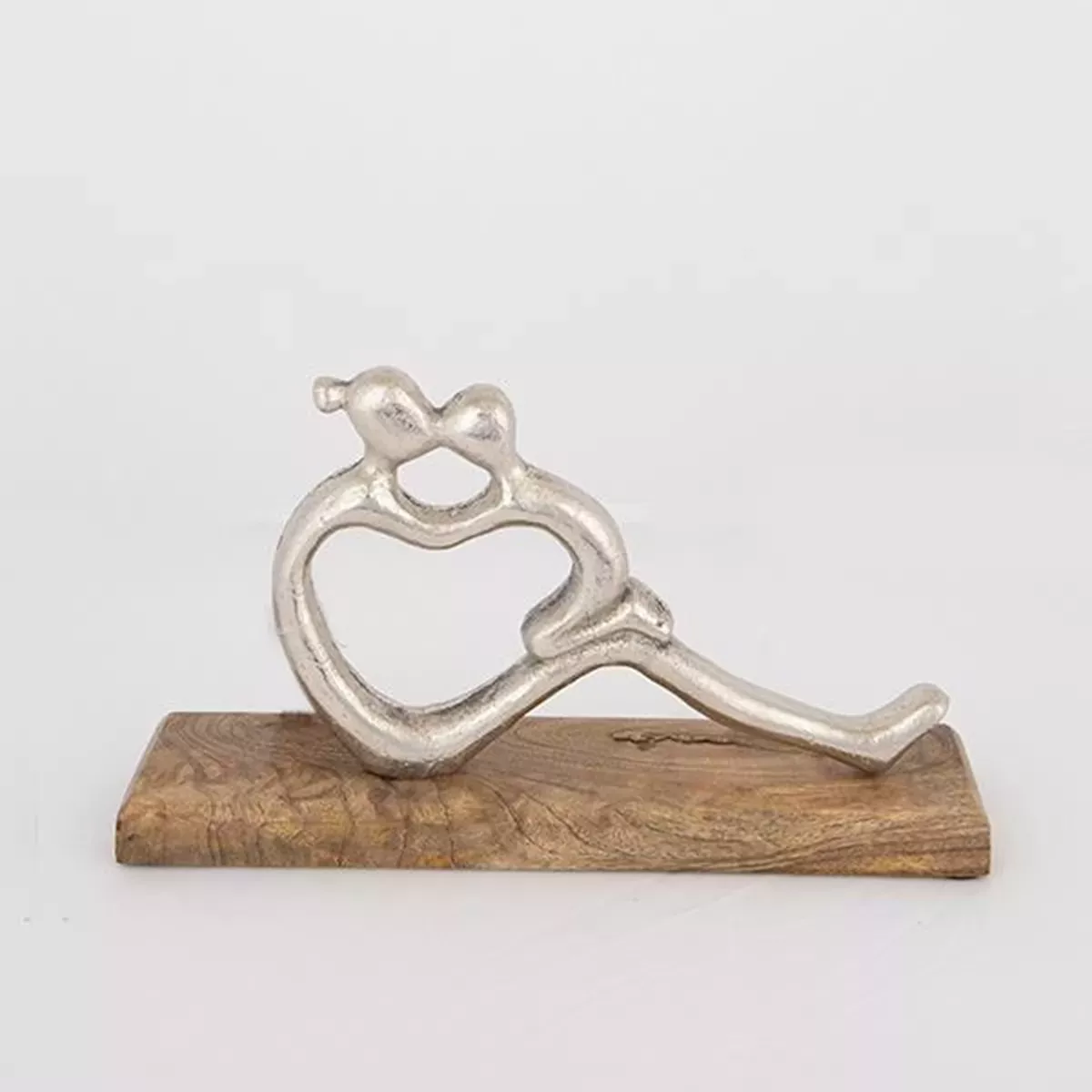 ΕΠΙΤΡΑΠΕΖΙΟ ΔΙΑΚΟΣΜΗΤΙΚΟ, ΖΕΥΓΑΡΙ ΣΕ ΞΥΛΙΝΗ ΚΑΡΔΙΑ, ΞΥΛΟ-ΜΕΤΑΛΛΟ, ΑΣΗΜΙ- ΦΥΣΙΚΟ, 32x5x24cm Estheti