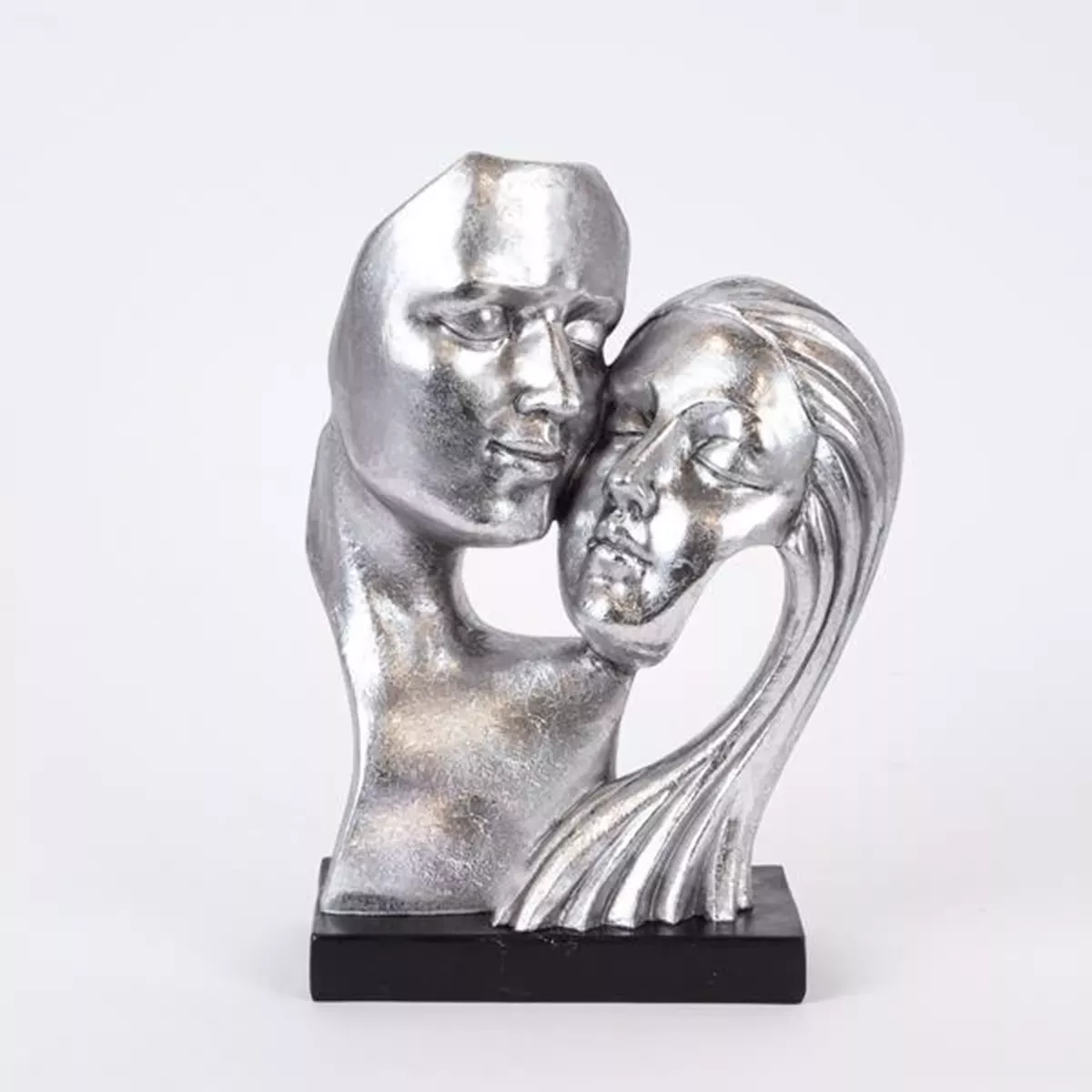 ΕΠΙΤΡΑΠΕΖΙΟ ΔΙΑΚΟΣΜΗΤΙΚΟ, ΔΥΟ ΠΡΟΣΩΠΑ, ΠΟΛΥΡΕΖΙΝ, ΑΣΗΜΙ & ΜΑΥΡΟ, 17x7.5x23cm Estheti
