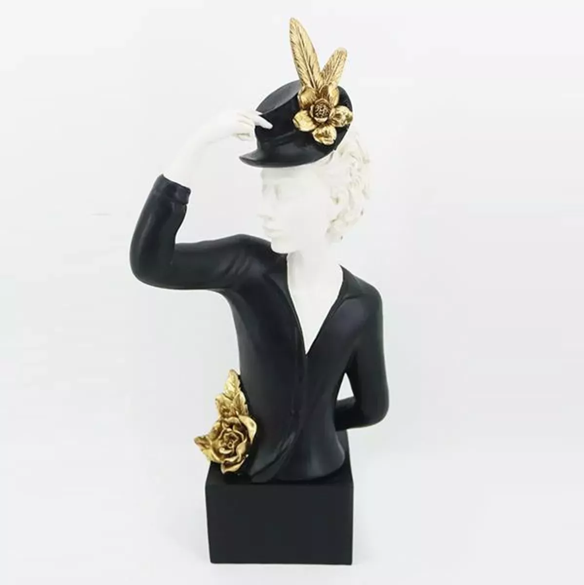 ΕΠΙΤΡΑΠΕΖΙΟ ΔΙΑΚΟΣΜΗΤΙΚΟ ΓΛΥΠΤΟ, ΓΥΝΑΙΚΑ ΜΕ ΚΑΠΕΛΟ, ΜΑΥΡΟ-ΛΕΥΚΟ-ΧΡΥΣΟ, 16.5x11x36.5cm Estheti