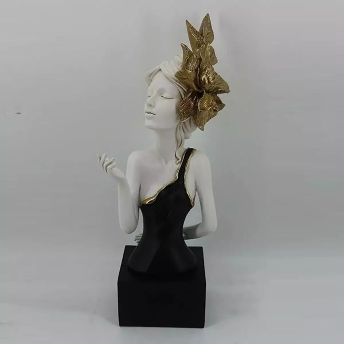 ΕΠΙΤΡΑΠΕΖΙΟ ΔΙΑΚΟΣΜΗΤΙΚΟ ΓΛΥΠΤΟ, ΓΥΝΑΙΚΑ ΜΕ ΛΟΥΛΟΥΔΙ, ΛΕΥΚΟ-ΧΡΥΣΟ-ΜΑΥΡΟ, 14x13x35cm Estheti