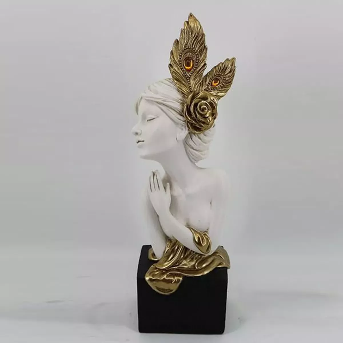 ΕΠΙΤΡΑΠΕΖΙΟ ΔΙΑΚΟΣΜΗΤΙΚΟ ΓΛΥΠΤΟ, ΓΥΝΑΙΚΑ ΜΕ ΛΟΥΛΟΥΔΙ, ΛΕΥΚΟ & ΧΡΥΣΟ, 12x11x33.5cm Estheti