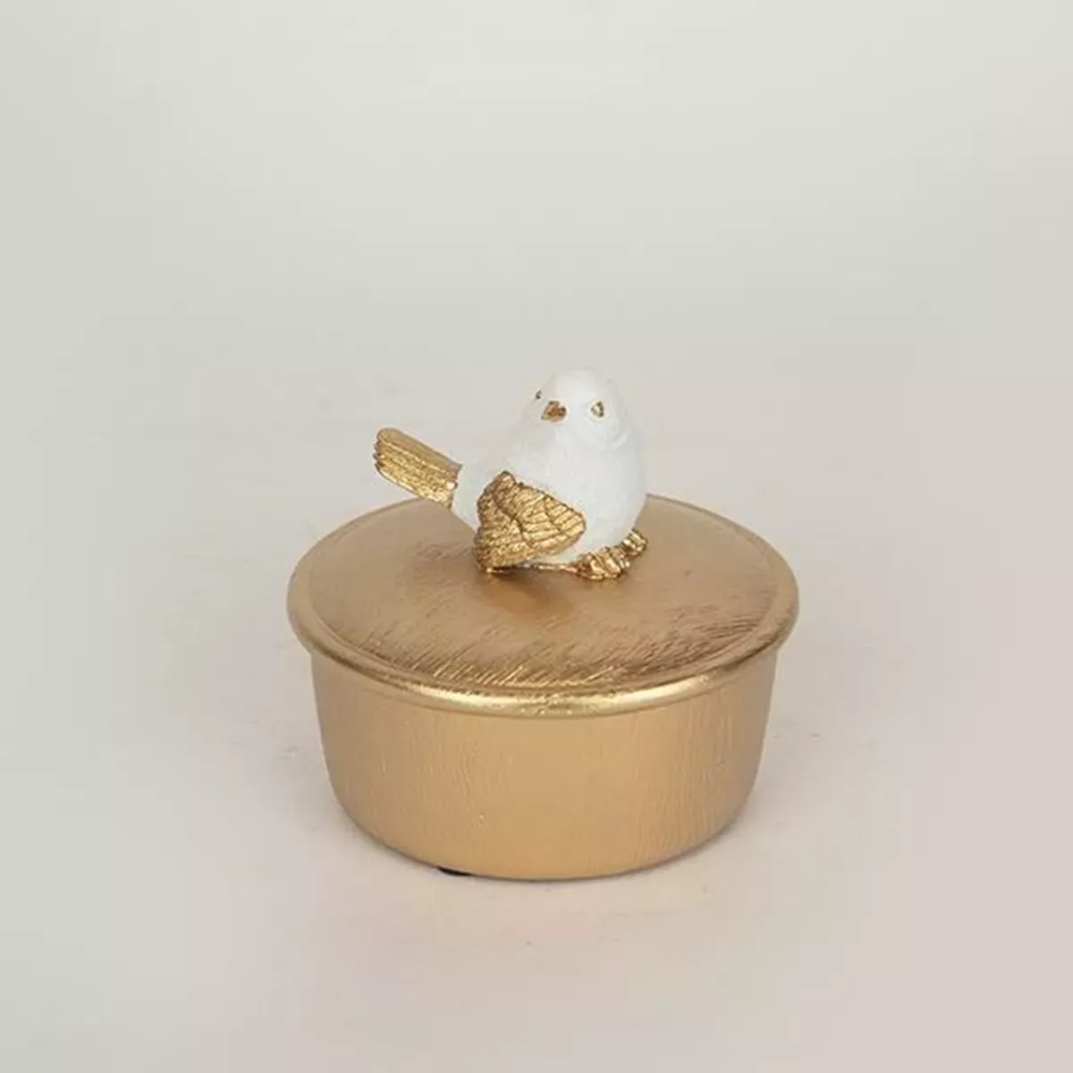 ΔΙΑΚΟΣΜΗΤΙΚΟ ΚΟΥΤΙ ΜΕ ΠΟΥΛΙ,ΞΥΛΙΝΟ, ΛΕΥΚΟ- ΧΡΥΣΟ, 10x10x9cm Estheti