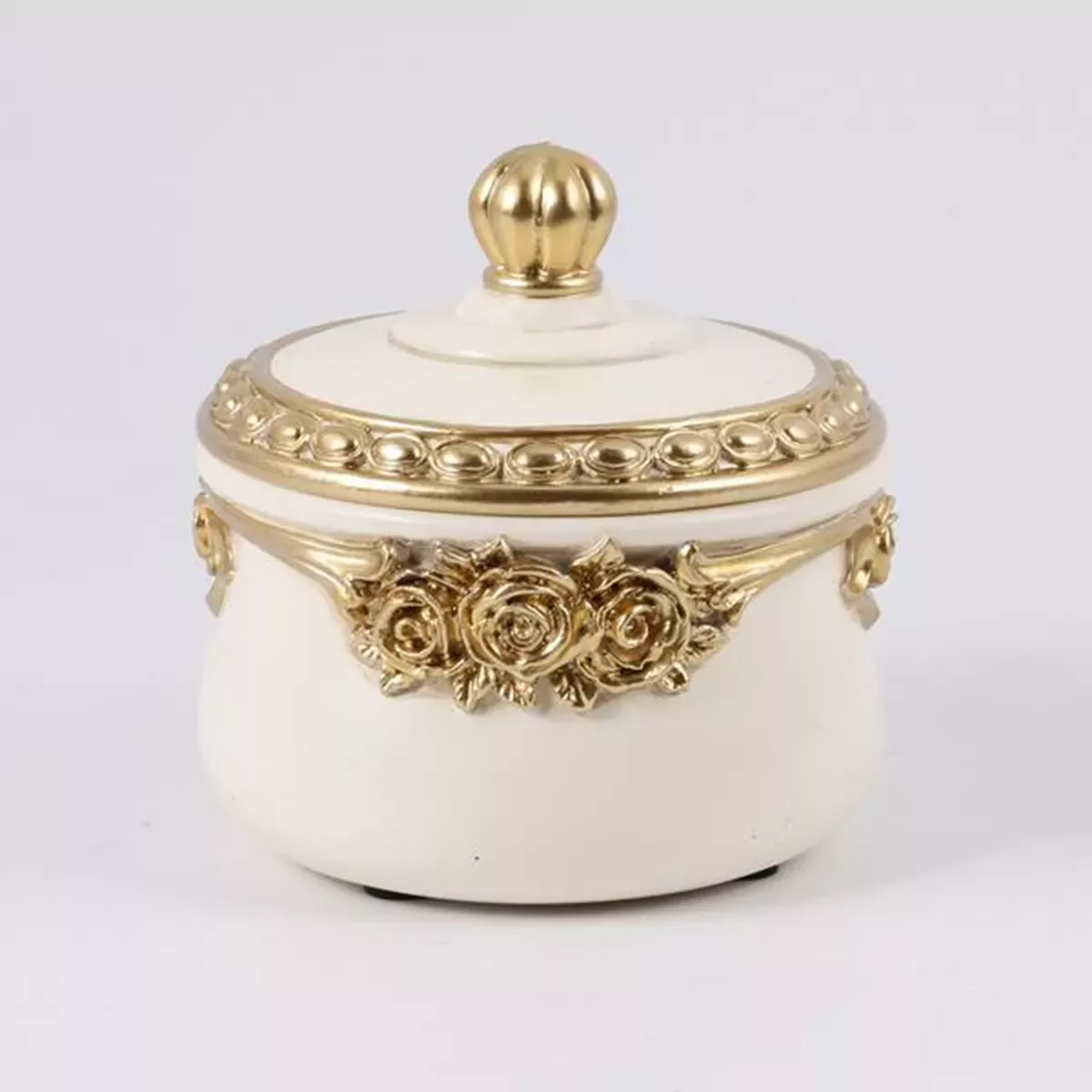 ΔΙΑΚΟΣΜΗΤΙΚΟ ΚΟΥΤΙ, ΠΟΛΥΡΕΖΙΝ, ΛΕΥΚΟ - ΧΡΥΣΟ, 10.2x9.8x9.5cm Estheti