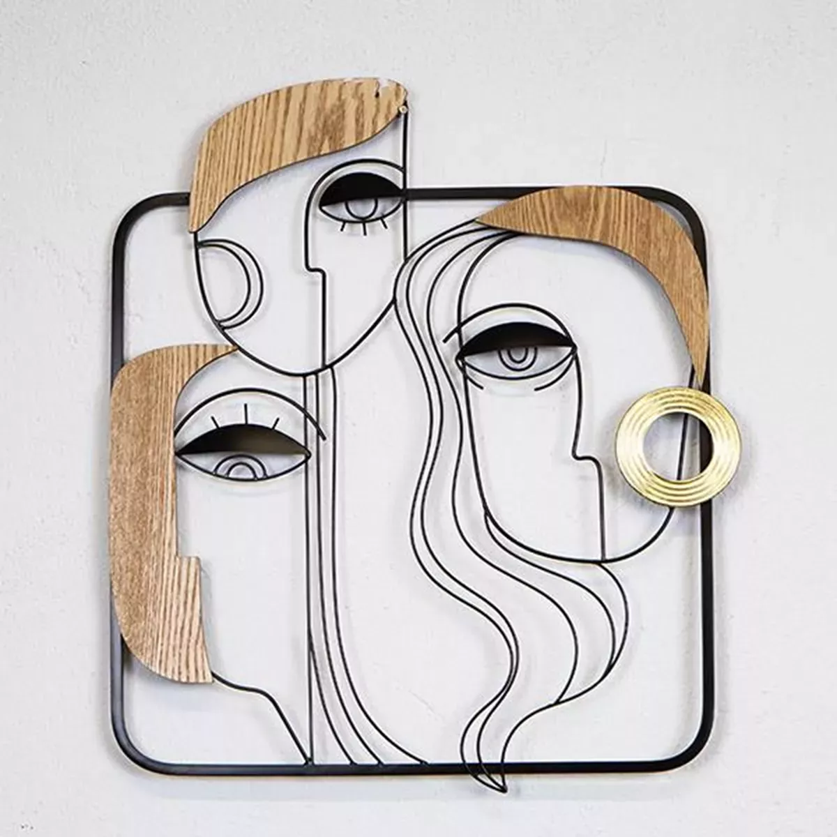 ΔΙΑΚΟΣΜΗΤΙΚΟ ΤΟΙΧΟΥ, ΜΕΤΑΛΛΙΚΟ, ΠΡΟΣΩΠΑ, ΚΑΦΕ & ΜΑΥΡΟ, 52.1x61.0x1.9cm Estheti