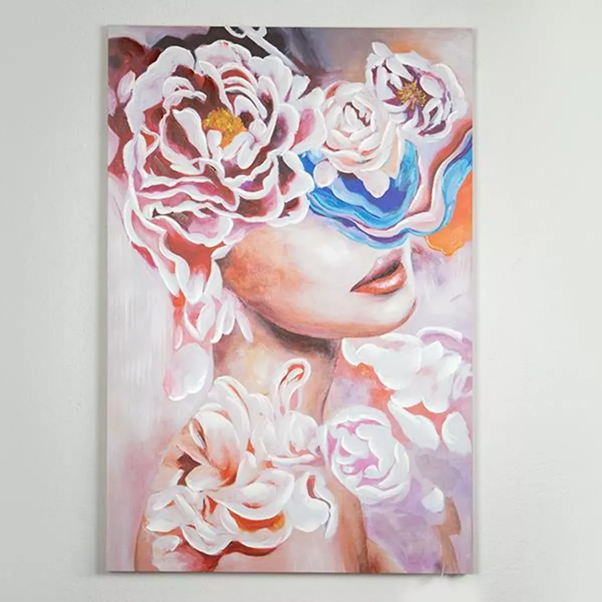 ΠΙΝΑΚΑΣ ΣΕ ΚΑΜΒΑ, ΓΥΝΑΙΚΑ, ΜΕ ΛΟΥΛΟΥΔΙΑ ΡΟΖ, 80x120x3.5cm Estheti