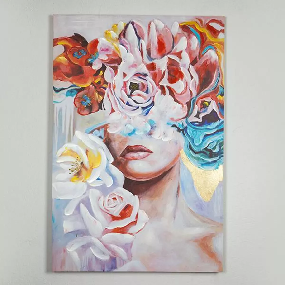 ΠΙΝΑΚΑΣ ΣΕ ΚΑΜΒΑ, ΓΥΝΑΙΚΑ, ΜΕ ΛΟΥΛΟΥΔΙΑ ΡΟΖ, 80x120x3.5cm Estheti