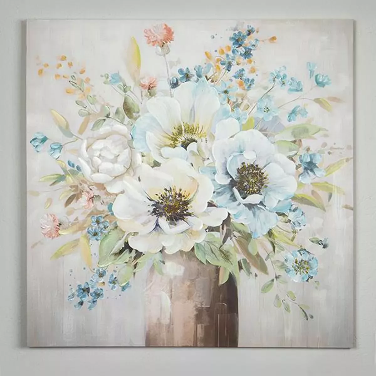 ΠΙΝΑΚΑΣ ΣΕ ΚΑΜΒΑ, ΛΟΥΛΟΥΔΙΑ, ΧΡΥΣΟ & ΜΠΛΕ, 100x100x3.5cm Estheti