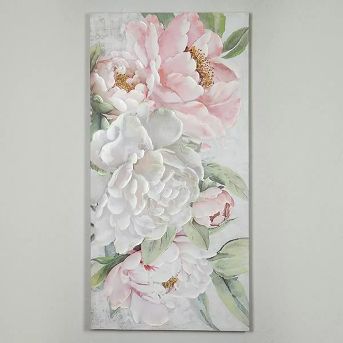 ΠΙΝΑΚΑΣ ΣΕ ΚΑΜΒΑ,ΜΕ ΛΟΥΛΟΥΔΙΑ ΡΟΖ-ΛΕΥΚΟ-ΠΡΑΣΙΝΟ-ΧΡΥΣΟ 80x120x3.5cm Estheti