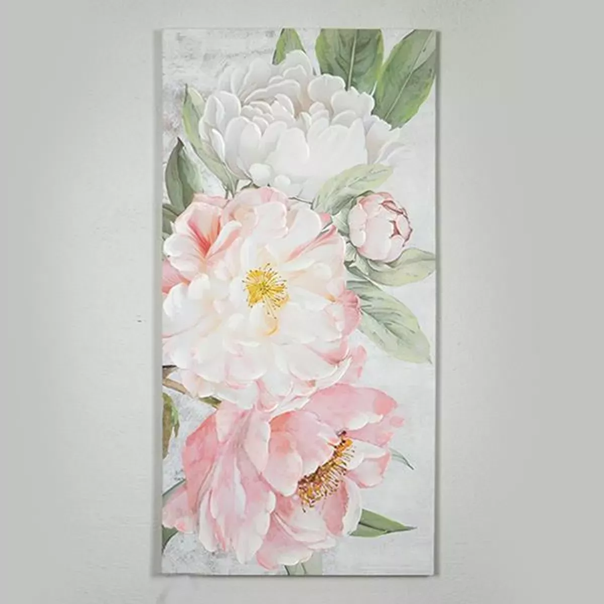 ΠΙΝΑΚΑΣ ΣΕ ΚΑΜΒΑ, ΛΟΥΛΟΥΔΙΑ ΡΟΖ-ΑΣΠΡΑ-ΠΡΑΣΙΝΟ-ΧΡΥΣΟ, 80x120x3.5cm Estheti