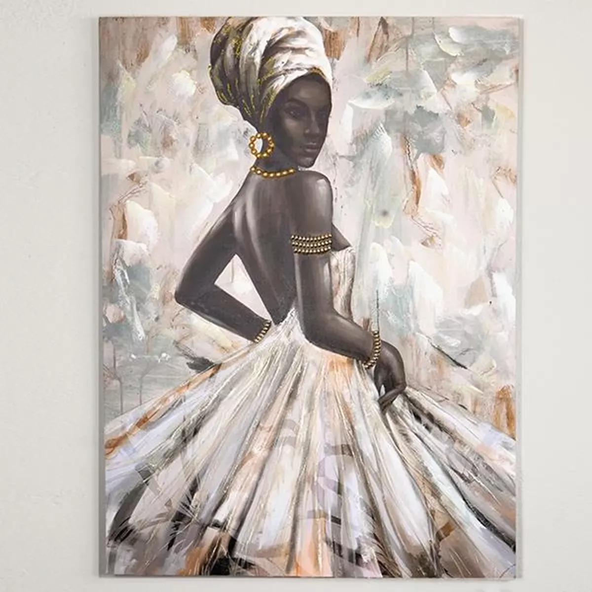ΠΙΝΑΚΑΣ ΚΑΜΒΑΣ, ΑΦΡΙΚΑΝΑ ME ΦΤΕΡΗ, ΛΕΥΚΟ-ΧΡΥΣΟ-ΚΑΦΕ. 90Χ3Χ120cm Estheti