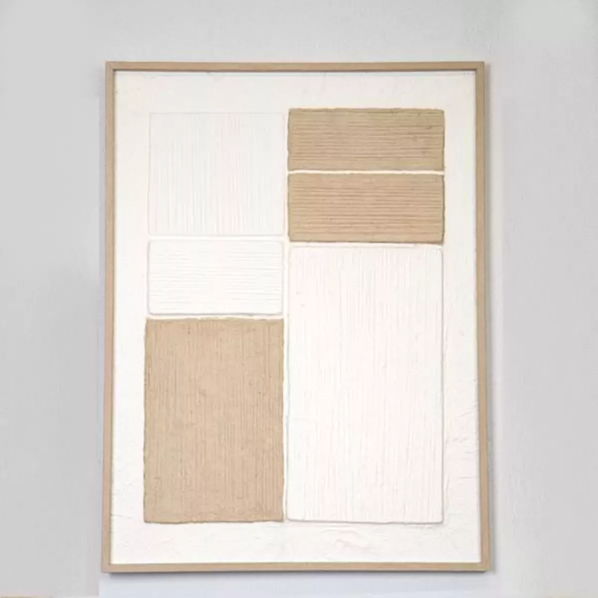 ΠΙΝΑΚΑΣ ΜΕ ΠΛΑΙΣΙΟ, ΣΧΕΔΙΟ ΣΕ ΡΙΖΟΧΑΡΤΟ, ΟΡΘΟΓΩΝΙΑ-ΔΕΞΙΑ, ΛΕΥΚΟ ΜΠΕΖ,60 x80x3cm Estheti