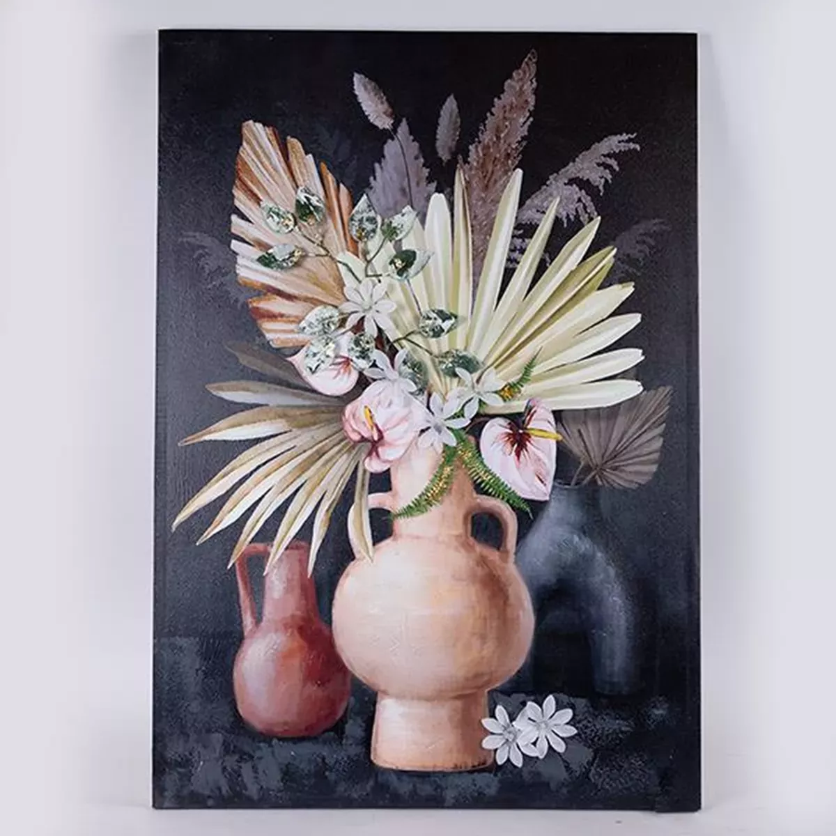ΠΙΝΑΚΑΣ, ΒΑΖΟ ΜΕ ΛΟΥΛΟΥΔΙΑ, ΠΟΛΥΧΡΩΜΟ-ΜΑΥΡΟ, 70x100x3cm Estheti