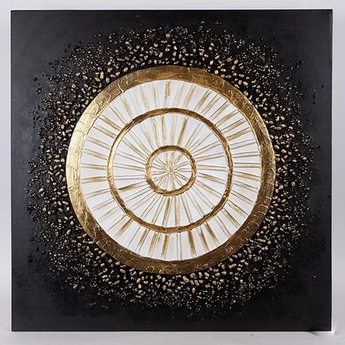 ΠΙΝΑΚΑΣ ΚΑΜΒΑΣ, ΣΧΕΔΙΟ ΚΥΚΛΟΣ, ΜΑΥΡΟ-ΧΡΥΣΟ-ΛΕΥΚΟ, 80x80x3cm Estheti