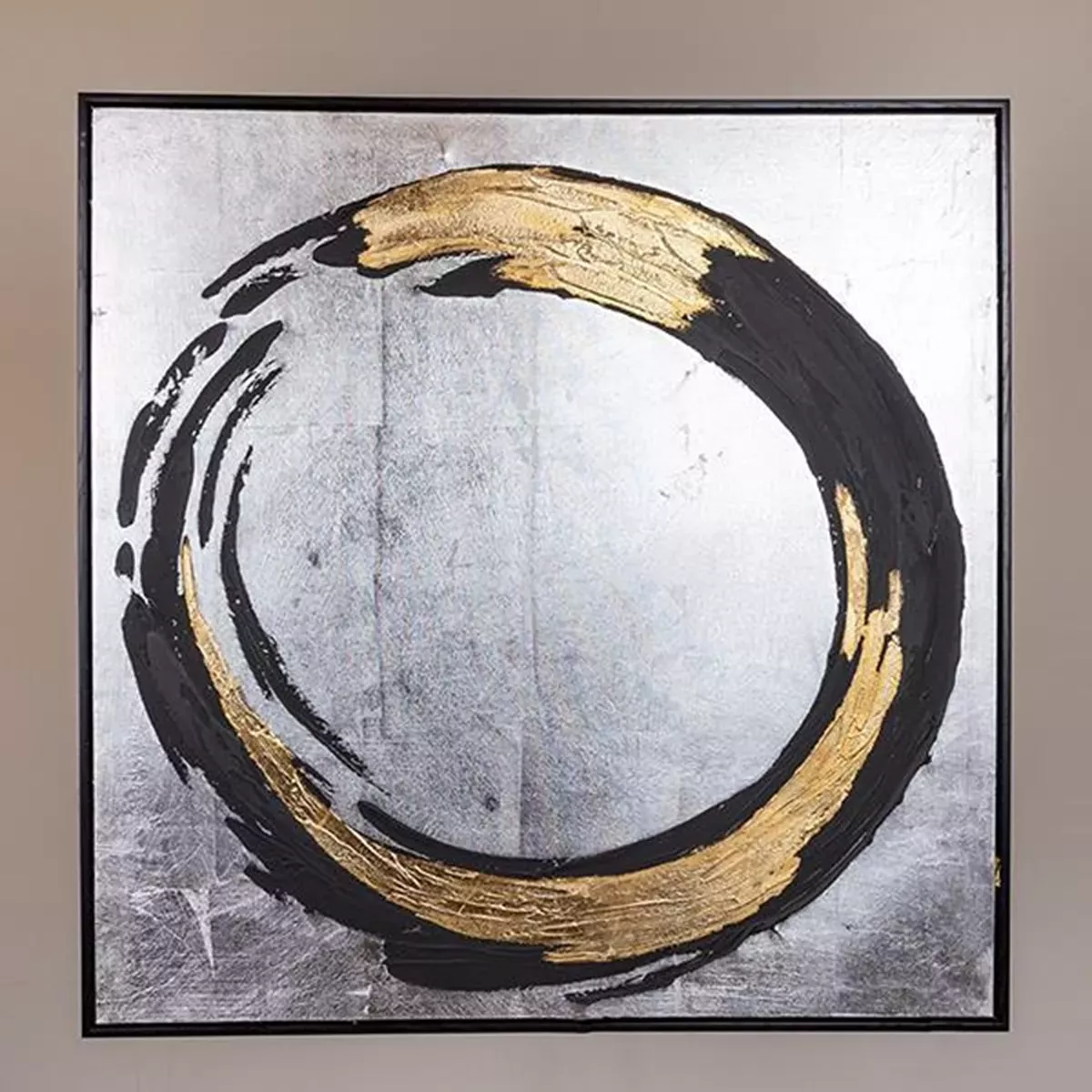 ΠΙΝΑΚΑΣ ΣΕ ΚΑΜΒΑ, ΚΥΚΛΟΣ, ΜΑΥΡΟ-ΧΡΥΣΟ-ΑΣΗΜΙ, 80x80x3.5cm Estheti