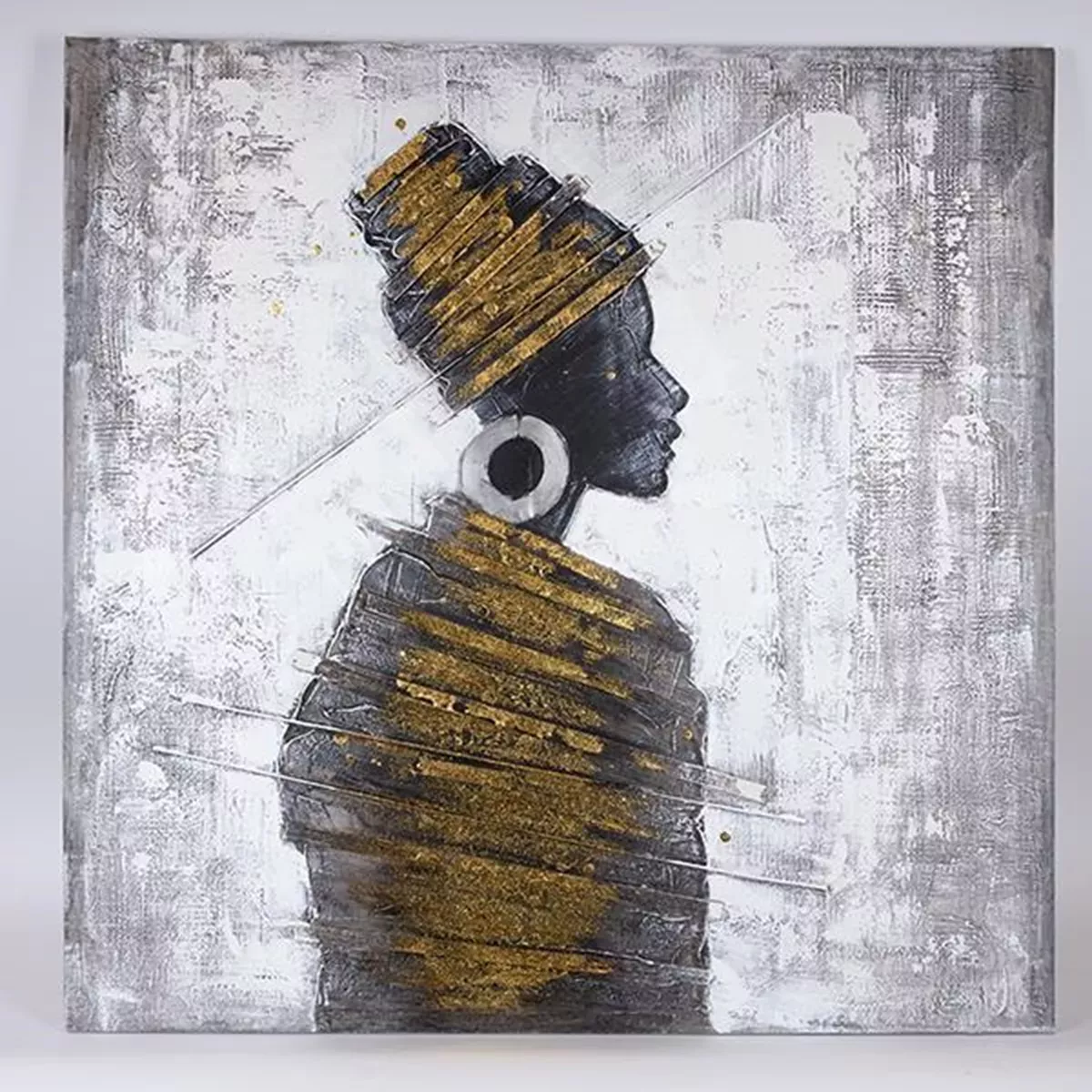 ΠΙΝΑΚΑΣ ΣΕ ΚΑΜΒΑ, ΓΥΝΑΙΚΑ, ΧΡΥΣΟ-ΜΑΥΡΟ-ΑΣΗΜΙ, 100x100x3cm Estheti