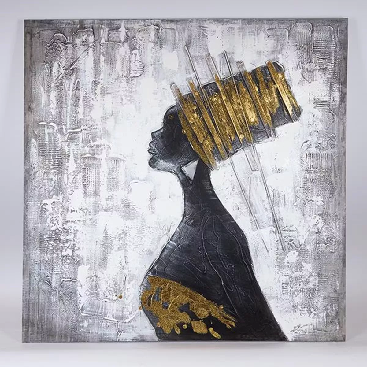 ΠΙΝΑΚΑΣ ΣΕ ΚΑΜΒΑ, ΓΥΝΑΙΚΑ, ΧΡΥΣΟ-ΜΑΥΡΟ-ΑΣΗΜΙ, 100x100x3cm Estheti