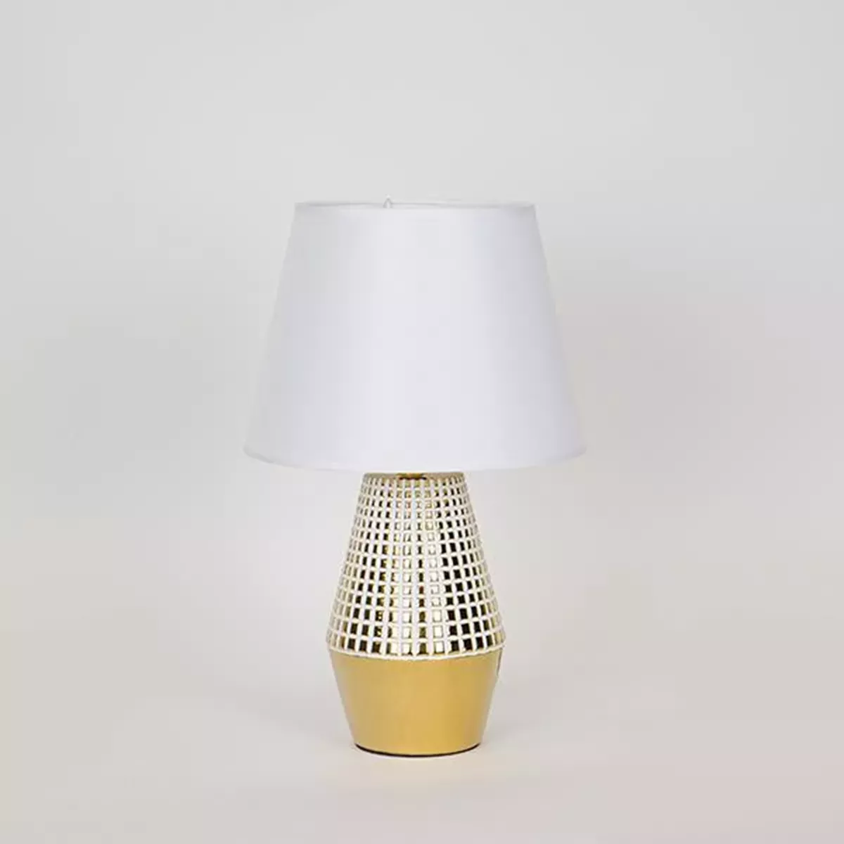 ΕΠΙΤΡΑΠΕΖΙΟ ΦΩΤΙΣΤΙΚΟ, ΜΕ ΥΦΑΣΜΑΤΙΝΟ ΚΑΠΕΛΟ, ΚΕΡΑΜΙΚΟ, ΛΕΥΚΟ- ΧΡΥΣΟ, 23x23x36cm