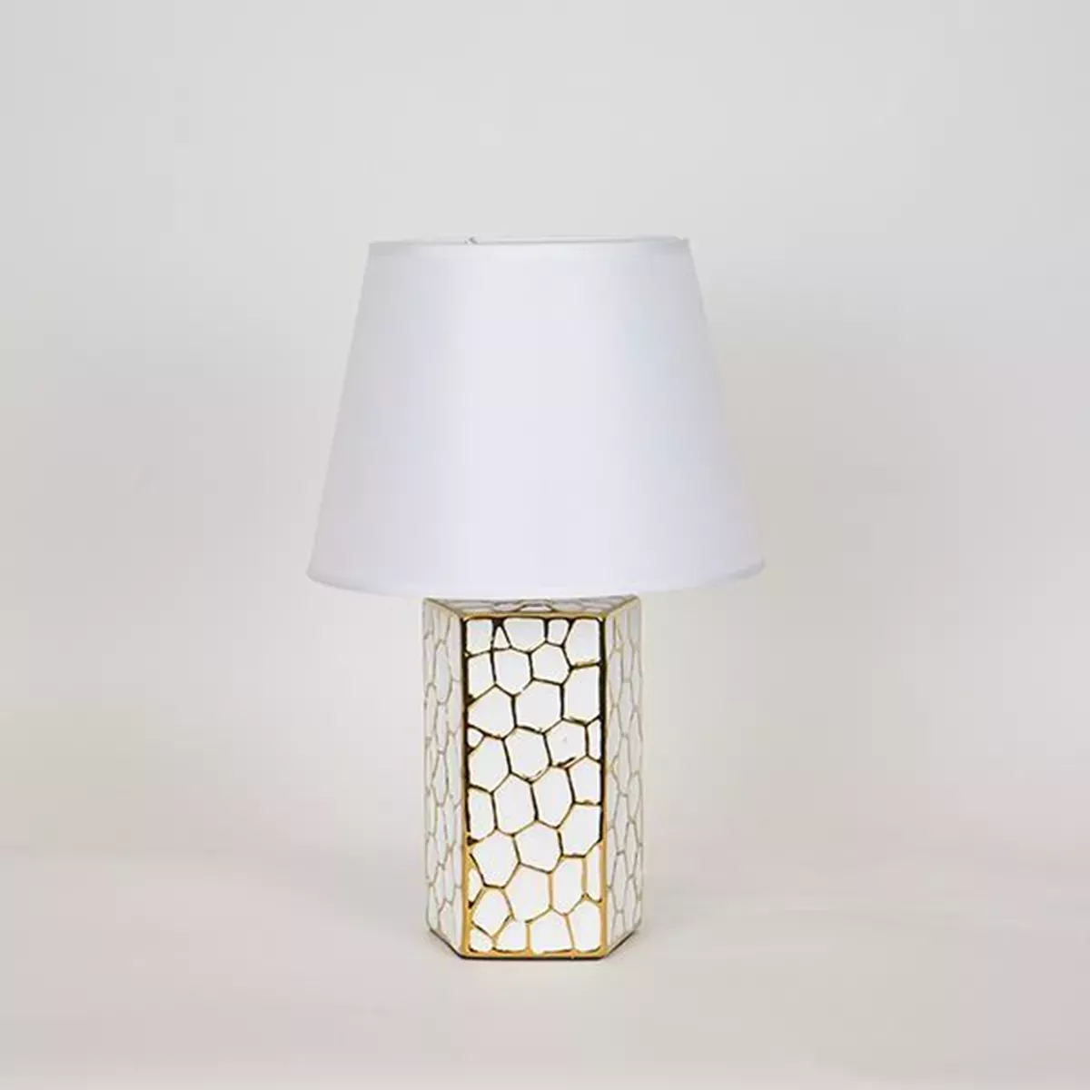 ΕΠΙΤΡΑΠΕΖΙΟ ΦΩΤΙΣΤΙΚΟ, ΜΕ ΥΦΑΣΜΑΤΙΝΟ ΚΑΠΕΛΟ, ΚΕΡΑΜΙΚΟ, ΛΕΥΚΟ- ΧΡΥΣΟ, 23x23x36cm Estheti