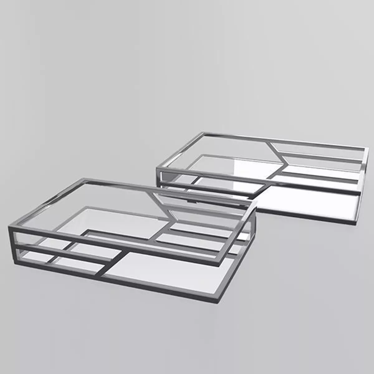 S/2 ΔΙΣΚΟΣ ΜΕΤΑΛΛΙΚΟΣ, ΜΕ ΚΑΘΡΕΦΤΗ, ΑΣΗΜΙ ΧΡΩΜΑ, L:D35x25x5, S:D30.5x20.5x5cm Estheti