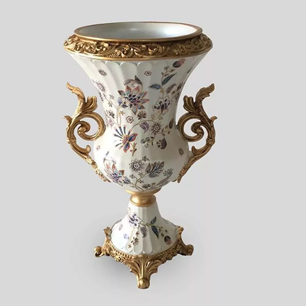 ΒΑΖΟ, ΠΟΡΣΕΛΑΝΗ ΜΕ ΠΟΛΥΡΕΖΙΝ, ΛΕΥΚΟ-ΧΡΥΣΟ ΜΕ ΛΟΥΛΟΥΔΙΑ, 24x24x46εκ Estheti
