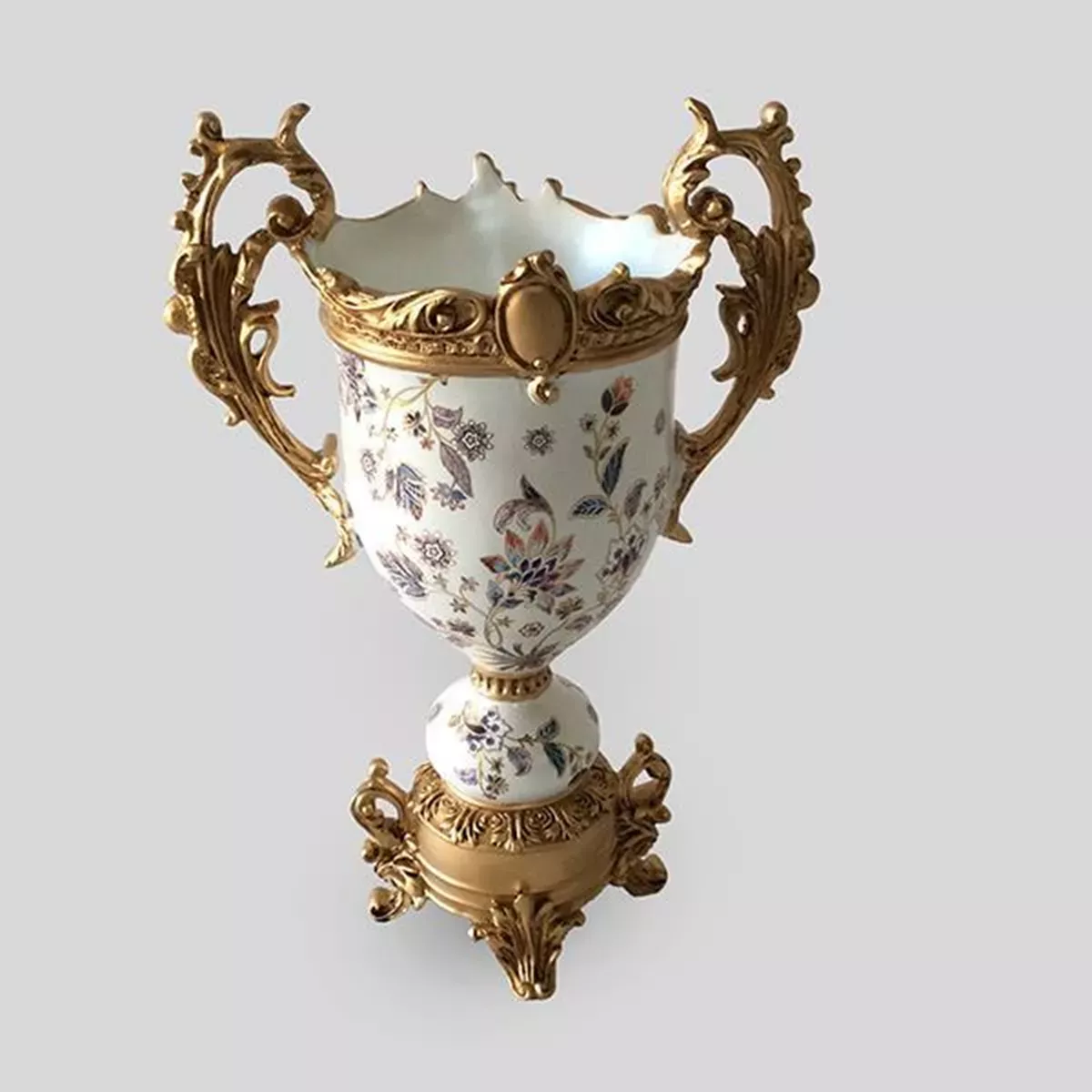 ΒΑΖΟ, ΠΟΡΣΕΛΑΝΗ ΜΕ ΠΟΛΥΡΕΖΙΝ, ΛΕΥΚΟ-ΧΡΥΣΟ ΜΕ ΛΟΥΛΟΥΔΙΑ, 32.5x21.5x47εκ Estheti