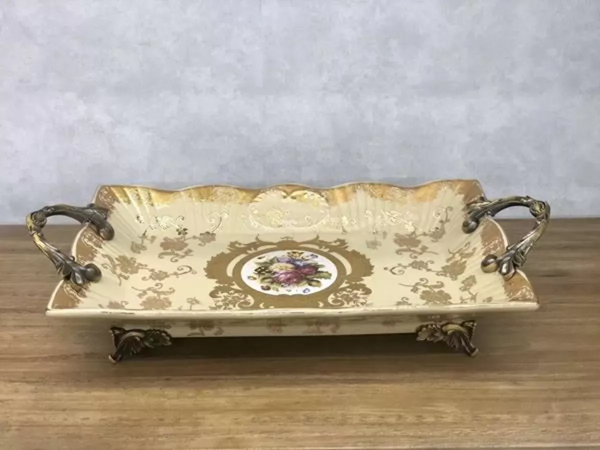 ΔΙΑΚΟΣΜΗΤΙΚΗ ΠΙΑΤΕΛΑ, ΠΟΡΣΕΛΑΝΗ, ,ΠΕΖ-ΧΡΥΣΟ, 38.5x20x8.5εκ Estheti