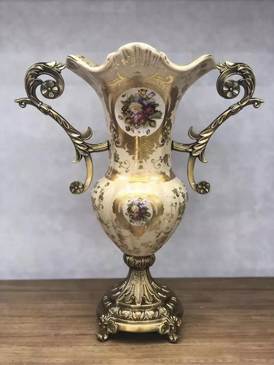 ΒΑΖΟ, ΠΟΡΣΕΛΑΝΗ, ΜΠΕΖ-ΧΡΥΣΟ, 36x16x43εκ Estheti