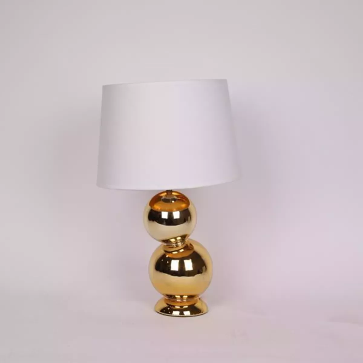 ΕΠΙΤΡΑΠΕΖΙΟ ΦΩΤΙΣΤΙΚΟ, ΜΕ ΥΦΑΣΜΑΤΙΝΟ ΚΑΠΕΛΟ, ΚΕΡΑΜΙΚΟ, ΧΡΥΣΟ-ΛΕΥΚΟ, 65x46x36.5εκ Estheti