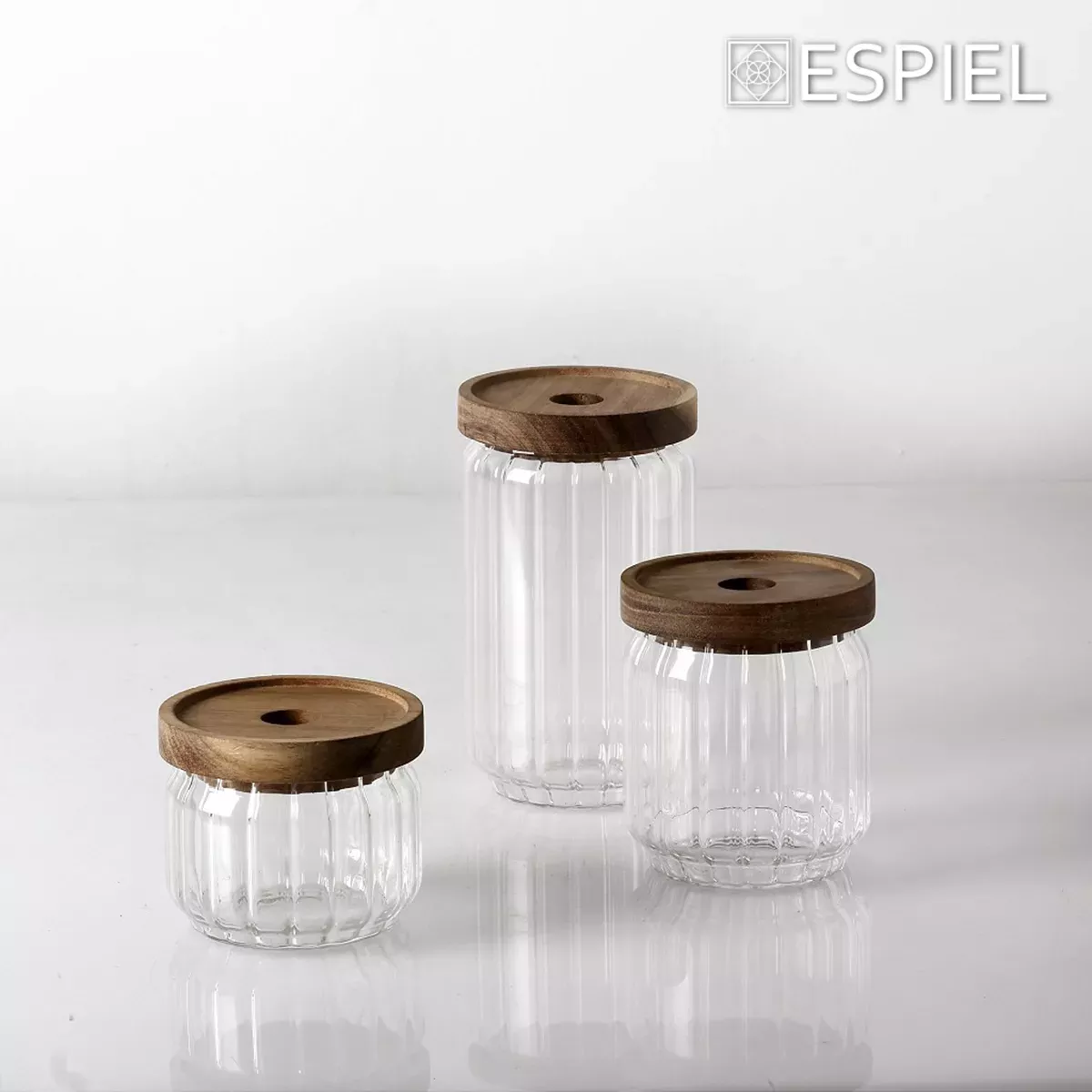 ΓΥΑΛΙΝΟ ΔΟΧΕΙΟ ΜΕ ΞΥΛ. ΚΑΠΑΚΙ ΑΚΑΚΙΑΣ 350ML 9X7EK ESPIEL