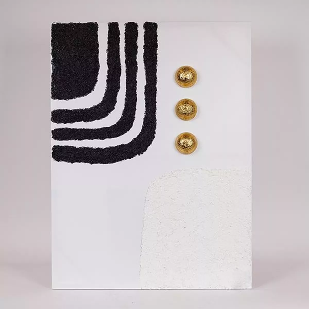 ΠΙΝΑΚΑΣ ΣΕ ΚΑΜΒΑ ΜΕ ΑΝΑΓΛΥΦΟ ΣΧΕΔΙΟ, ΛΕΥΚΟ-ΜΑΥΡΟ-ΧΡΥΣΟ, 60x7x80εκ Estheti