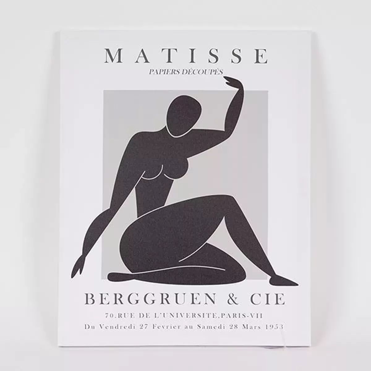 ΠΙΝΑΚΑΣ ΣΕ ΚΑΜΒΑ, ΓΥΝΑΙΚΕΙΑ ΦΙΓΟΥΡΑ MATISSE, ΜΑΥΡΟ-ΓΚΡΙ-ΛΕΥΚΟ, 40x50εκ