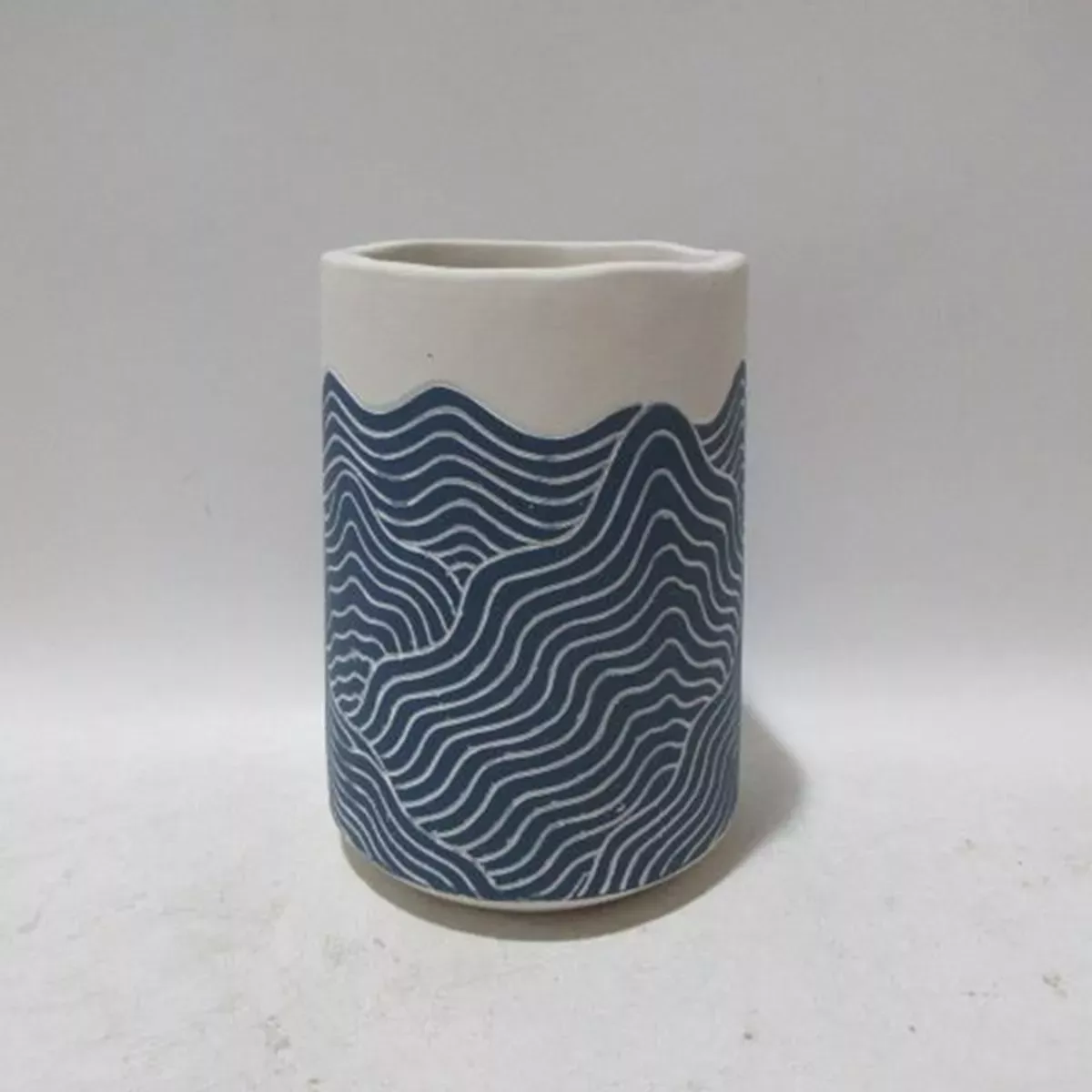 ΒΑΖΟ, ΤΣΙΜΕΝΤΕΝΙΟ, ΜΠΛΕ-ΛΕΥΚΟ, 14x14x20εκ Estheti