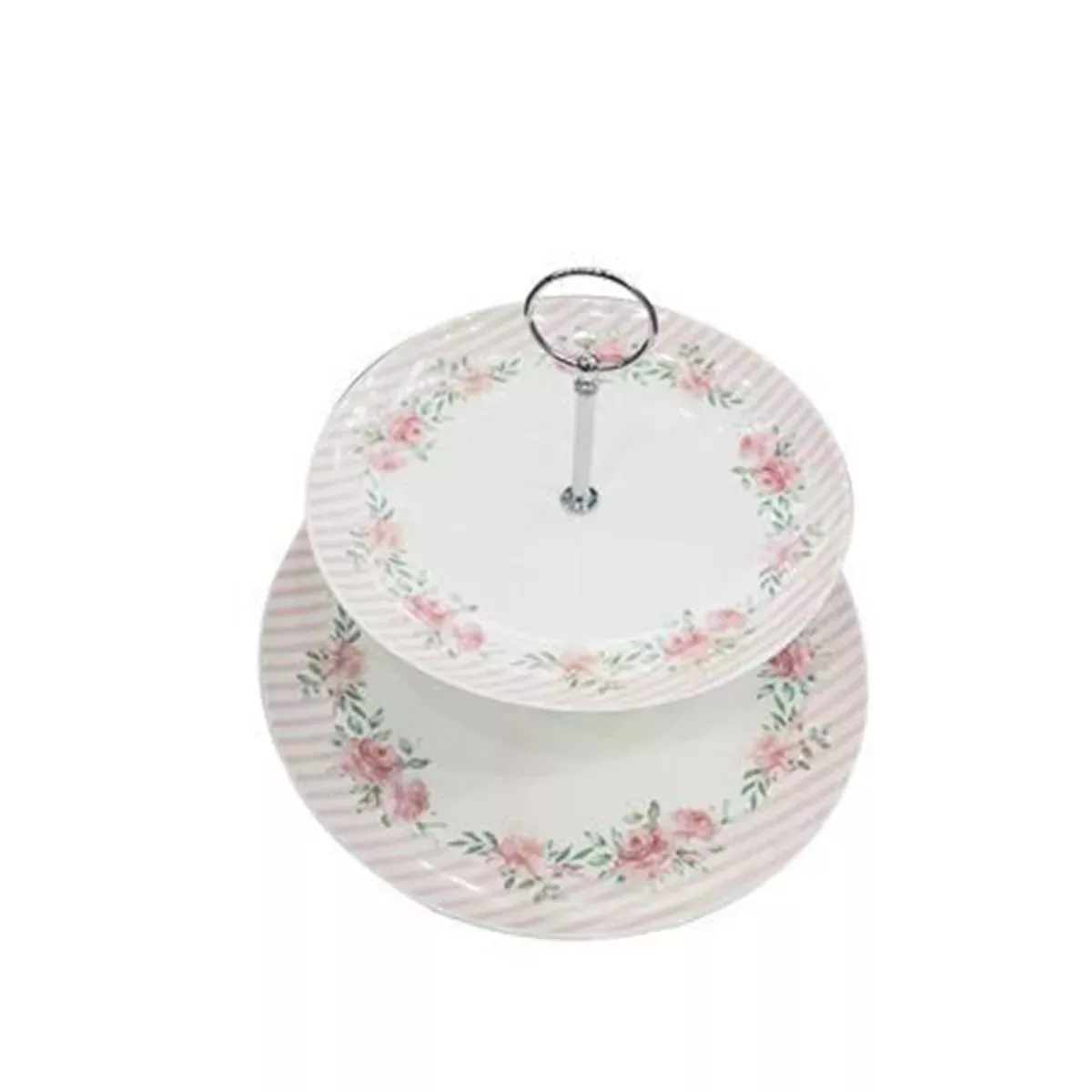 ΤΟΥΡΤΙΕΡΑ, 2 ΕΠΙΠΕΔΩΝ, ΠΟΡΣΕΛΑΝΗ, ΛΕΥΚΗ ΜΕ ΡΟΖ ΑΝΘΑΚΙΑ, ΠΙΑΤΟ1:26εκ, ΠΙΑΤΟ2:20εκ Estheti